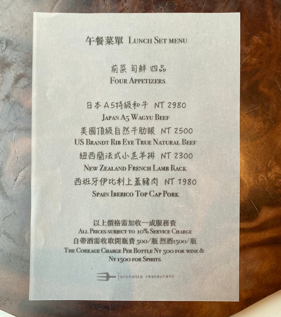 餐點走的是無菜單料理,有分午間和晚間菜單,午晚間的主餐基本上都是一樣的,就差在晚上會多一道前菜,價格上自然也高一些。