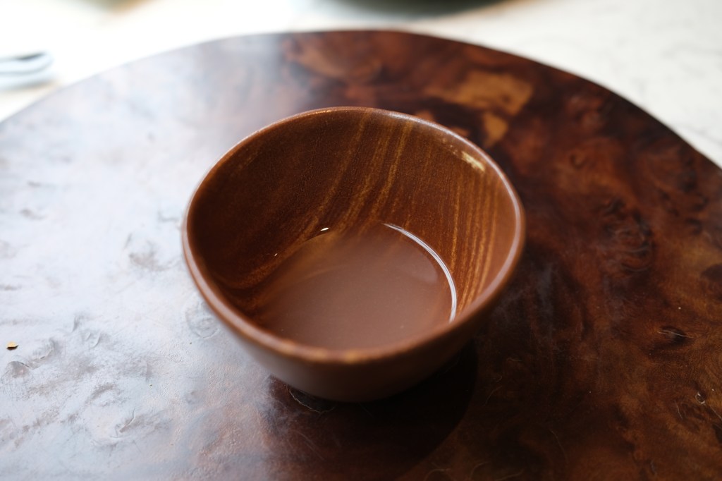 這道不算在四品前菜內,算是主廚招待,湯裡滿滿冬瓜的鮮甜,還有帶點芋頭的香氣,而且湯碗是加熱過的,所以湯喝起來特別燙,這點對我來說相當加分,唯一可惜是有點小碗,喝完還是意猶未盡~~