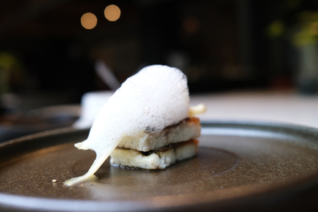 此生沒吃過烤得那麼脆的鰻魚,而且炭烤的香氣 100 分!上頭的白泡泡是番茄的發酵而成,底下還藏著金桔,口味豐富卻同時很清爽,值得為了這道再訪。